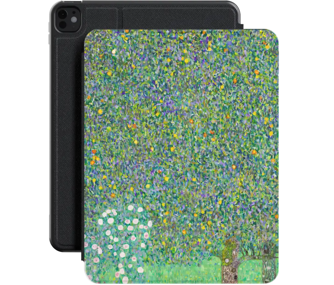 Elevate your tablet’s style with our iPad Case, beautifully adorned with Gustav Klimt's "Rose Bushes Under Trees." This exquisite case seamlessly blends art and functionality, making it the perfect accessory for those who appreciate both beauty and practicality.