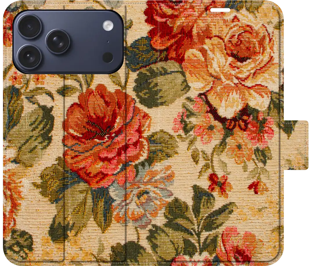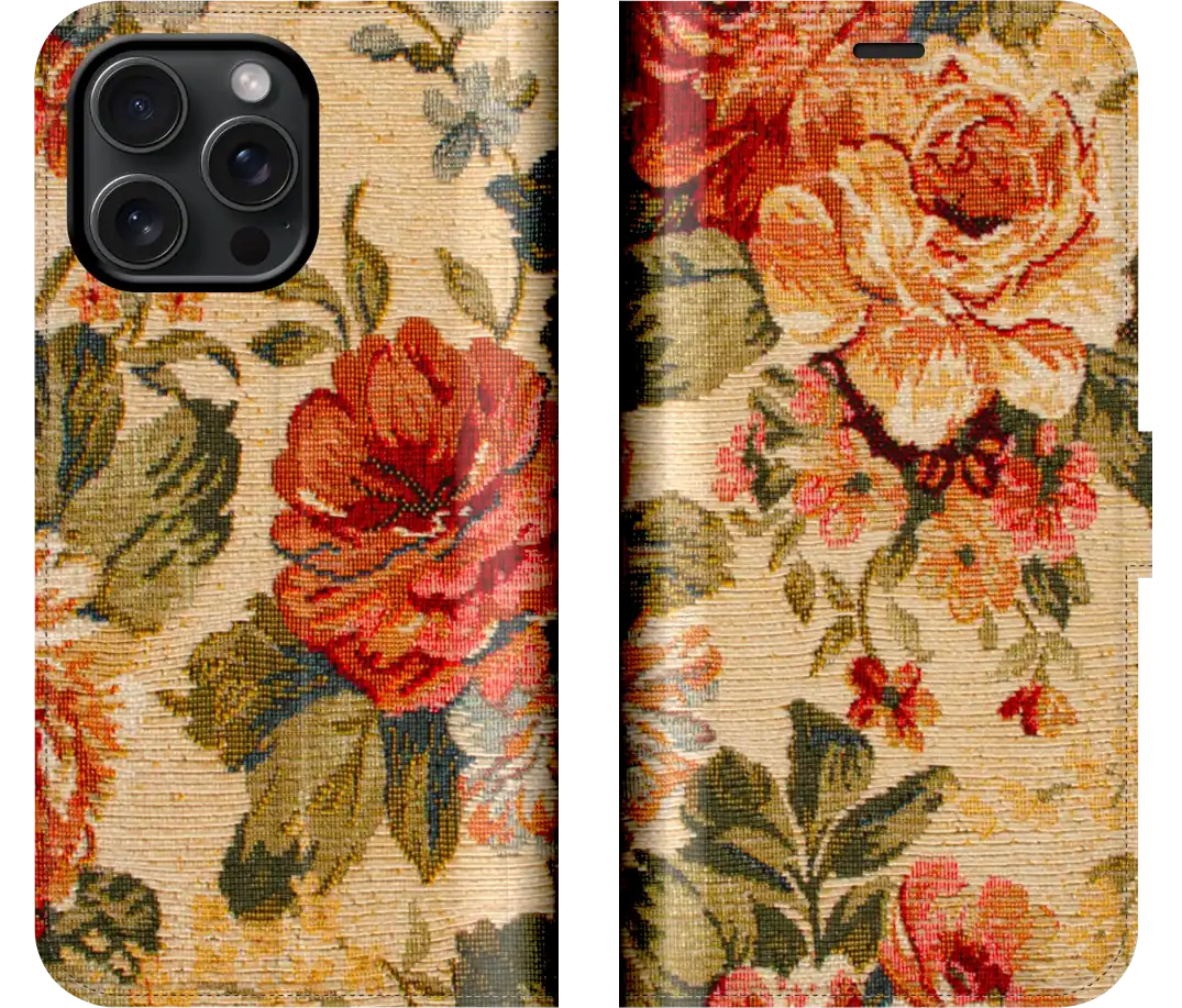 Elevate your phone's style with our faux leather folio wallet case, featuring a floral design inspired by the works of William Morris. This case blends the elegance of Morris' intricate floral patterns with the convenience of modern phone protection, offering both beauty and practicality.