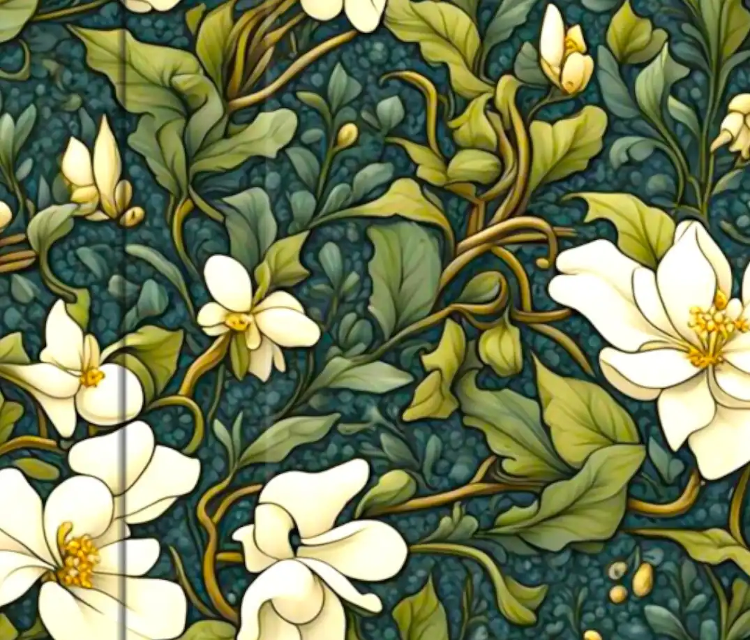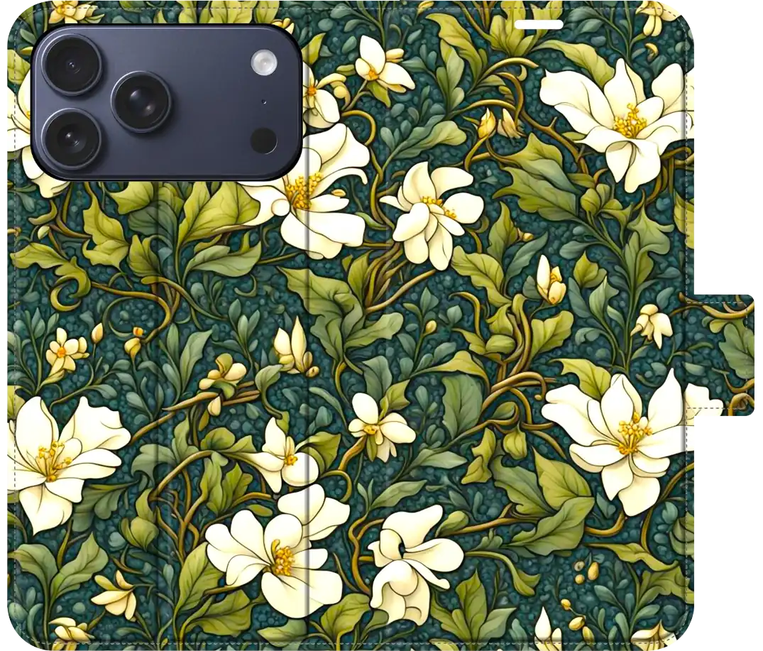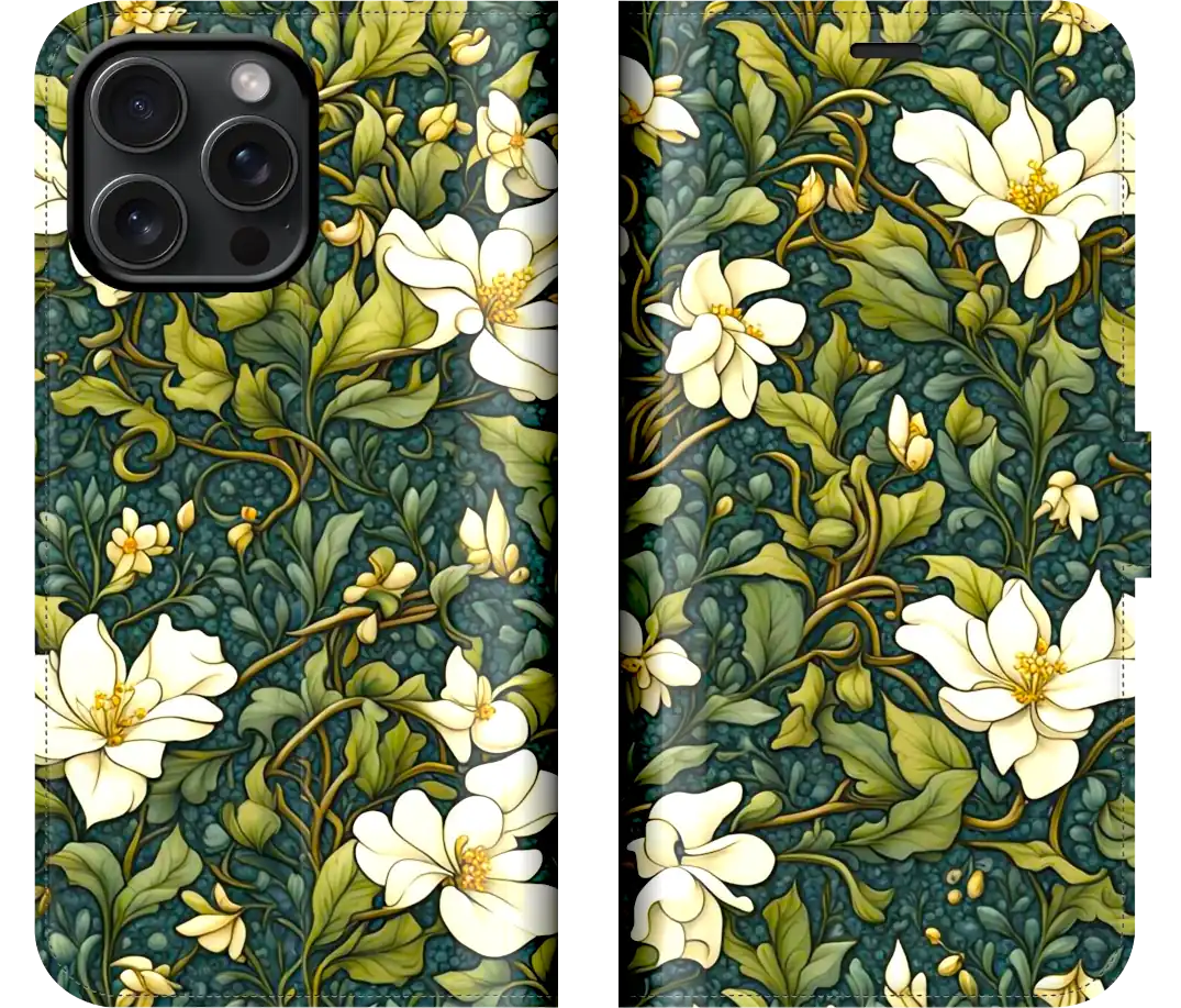 Elevate your phone's style with our faux leather folio wallet case, featuring a floral design inspired by the works of William Morris. This case blends the elegance of Morris' intricate floral patterns with the convenience of modern phone protection, offering both beauty and practicality.