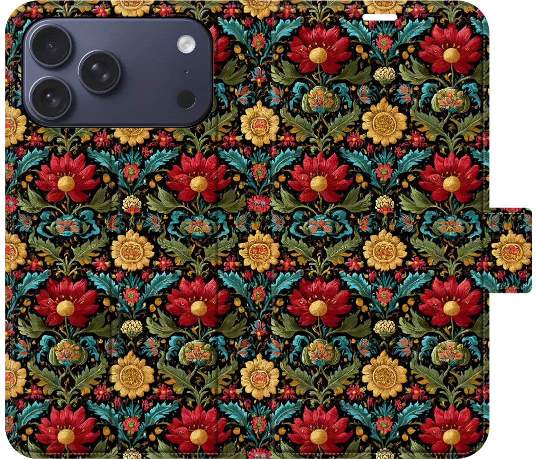 Elevate your phone's style with our faux leather folio wallet case, featuring an exquisite Medieval Brocade Tapestry effect inspired by the Art Nouveau works of William Morris. This case blends the elegance of Morris's intricate floral patterns with the convenience of modern phone protection, offering both beauty and practicality.