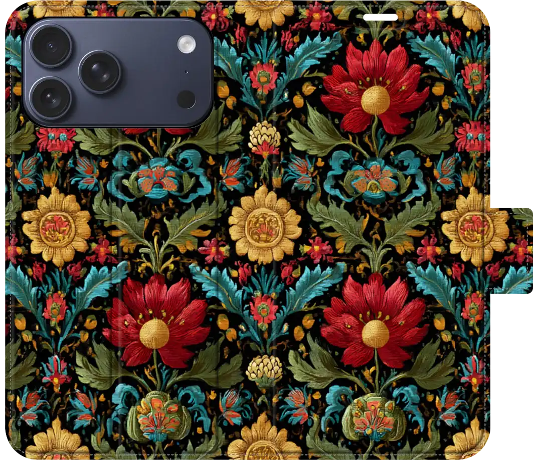 Elevate your phone's style with our faux leather folio wallet case, featuring an exquisite Medieval Brocade Tapestry effect inspired by the Art Nouveau works of William Morris. This case blends the elegance of Morris's intricate floral patterns with the convenience of modern phone protection, offering both beauty and practicality.