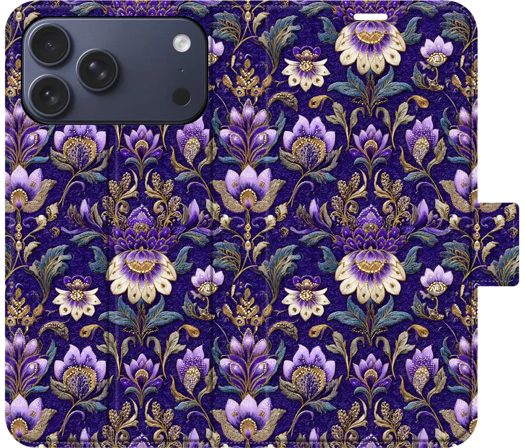 Elevate your phone's style with our faux leather folio wallet case, featuring an exquisite Medieval Brocade Tapestry effect inspired by the Art Nouveau works of William Morris. This case blends the elegance of Morris's intricate floral patterns with the convenience of modern phone protection, offering both beauty and practicality.